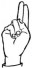 На ћирилици написано ЈЕЛА МЕЧАНИН састоји се из 11 слова [?]. Исписано ћириличном једноручном азбуком за глувонеме: